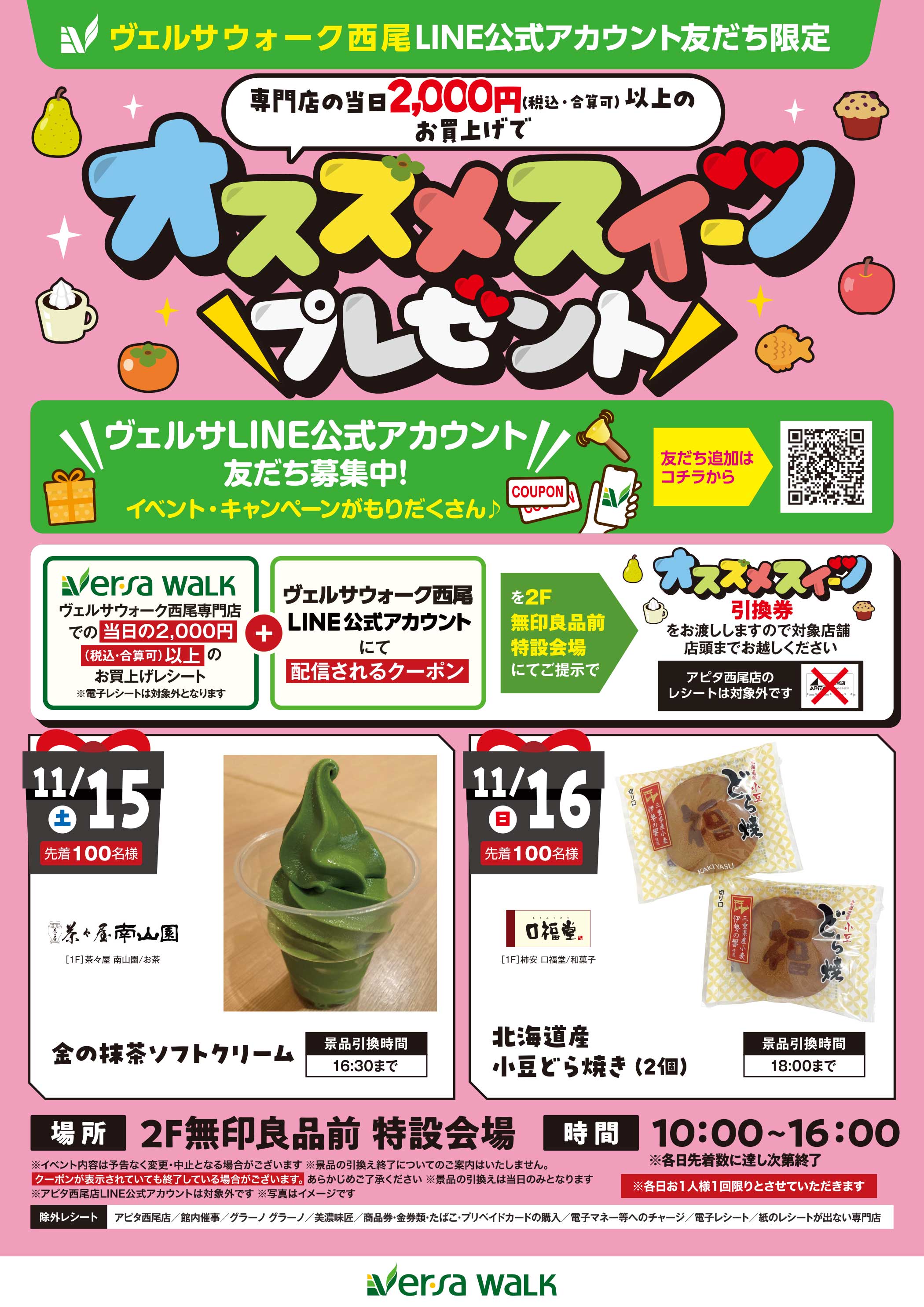 11月15日(土)・11月16日(日) ※各日先着100名様10:00~16:00 ※各日先着数に達し次第終了 ※各日お1人様1回限りとさせていただきます