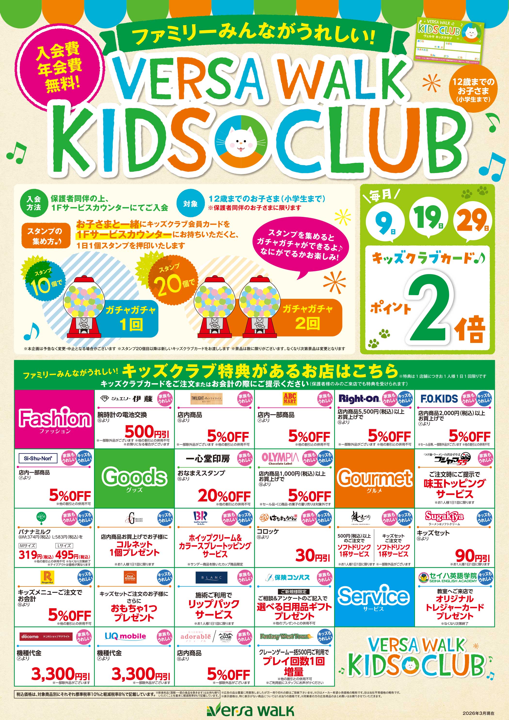 ヴェルサキッズクラブは、12歳までのお子様(小学生まで)が入会できるカードです。