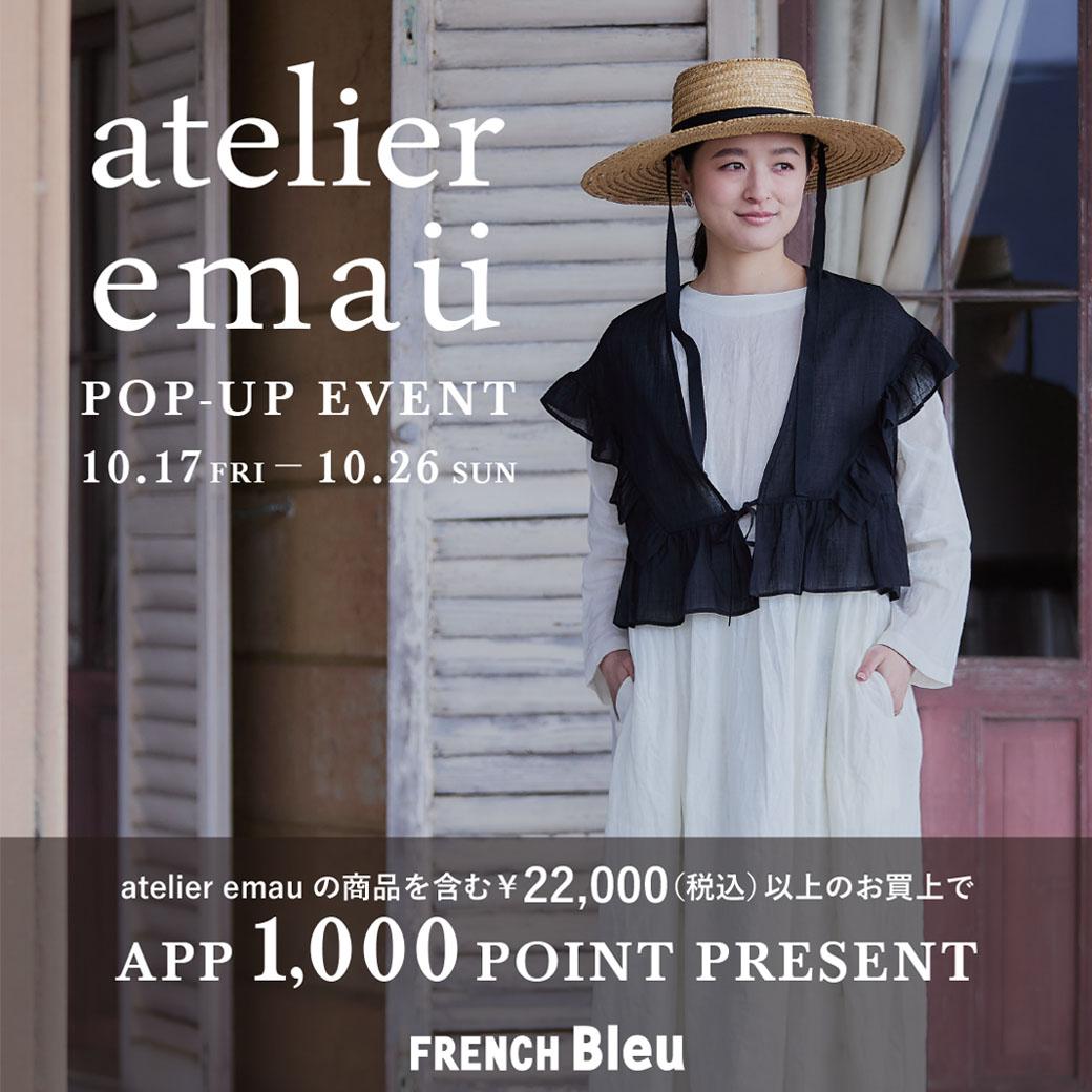 ご購入特典として、atelier emauを含む ¥22,000(税込)以上のお買上でアプリ 1,000ポイントをプレゼントいたします。